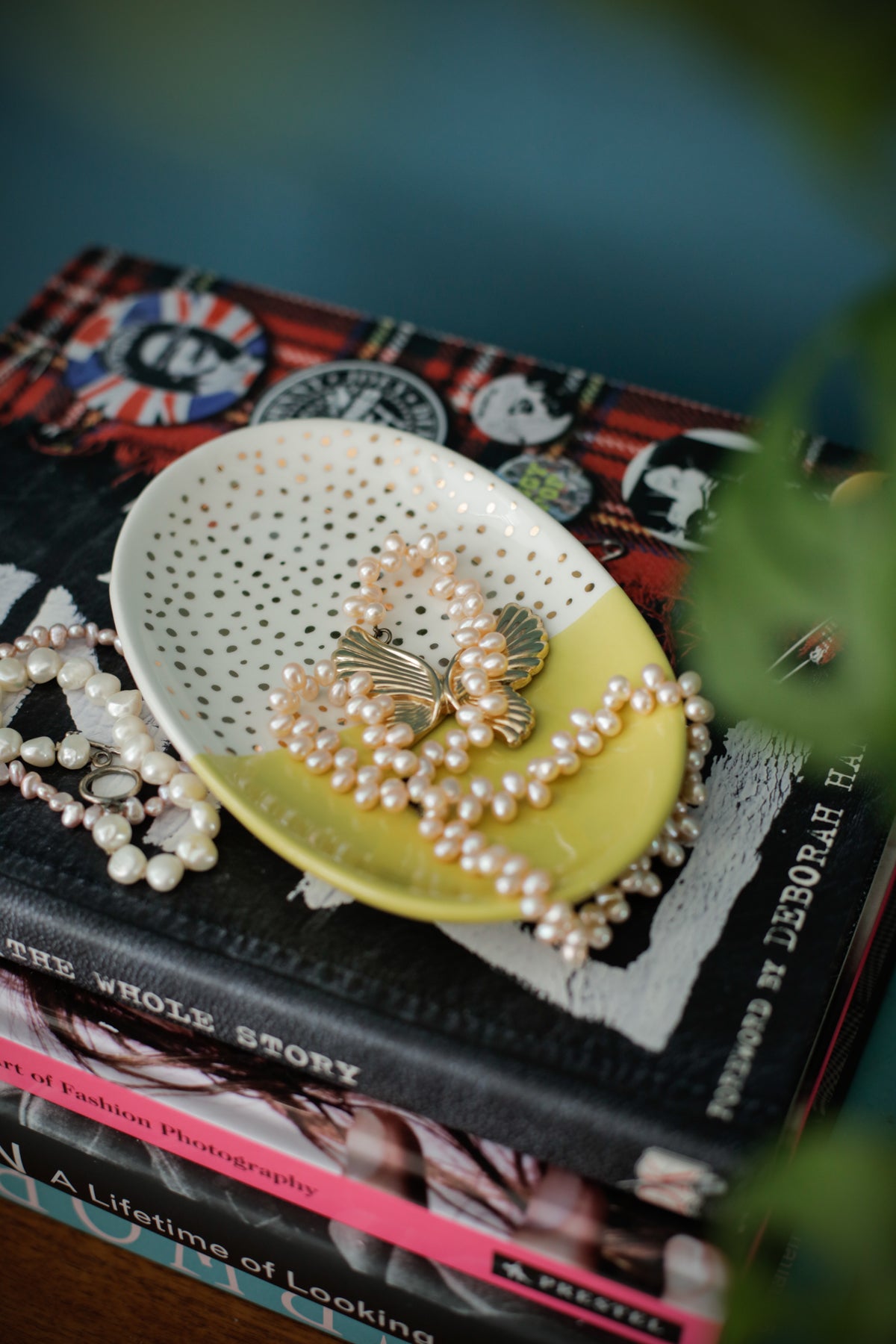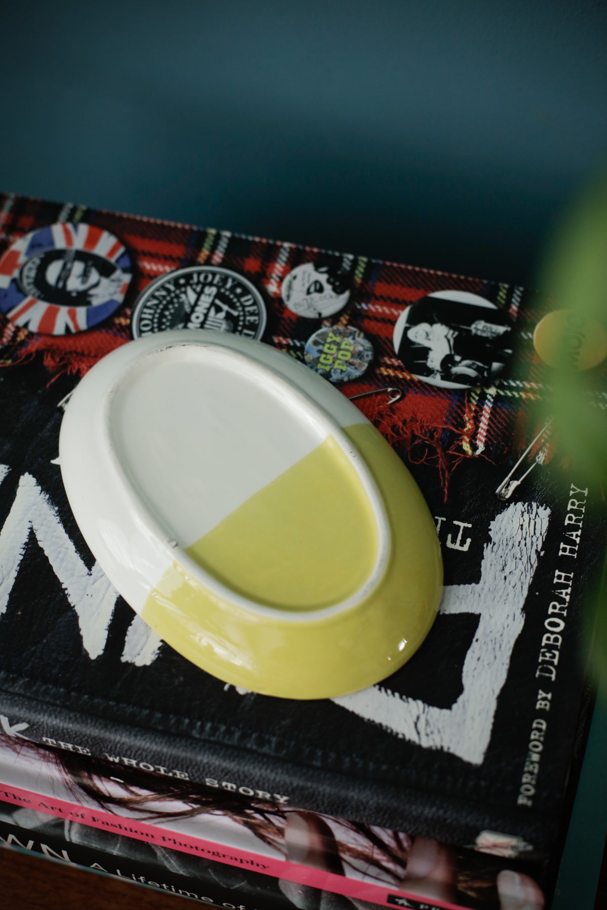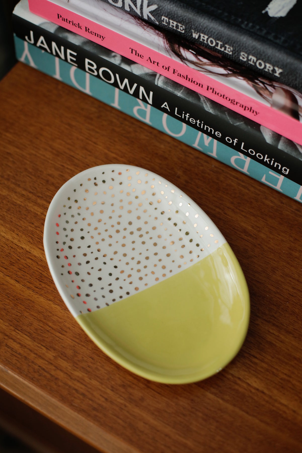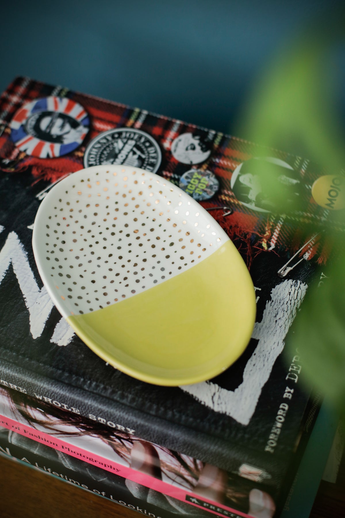 Pre-Loved Jewellery dish Yellow and gold dots in excellent condition.