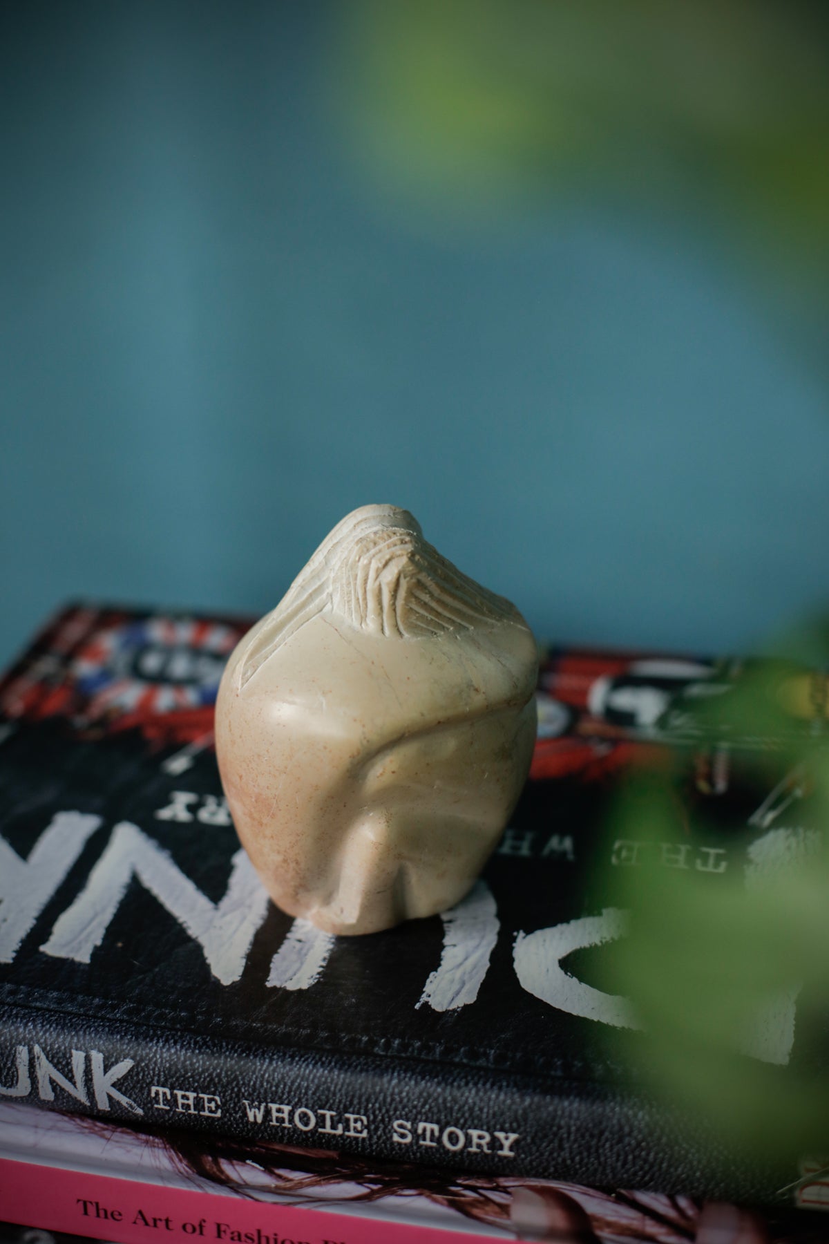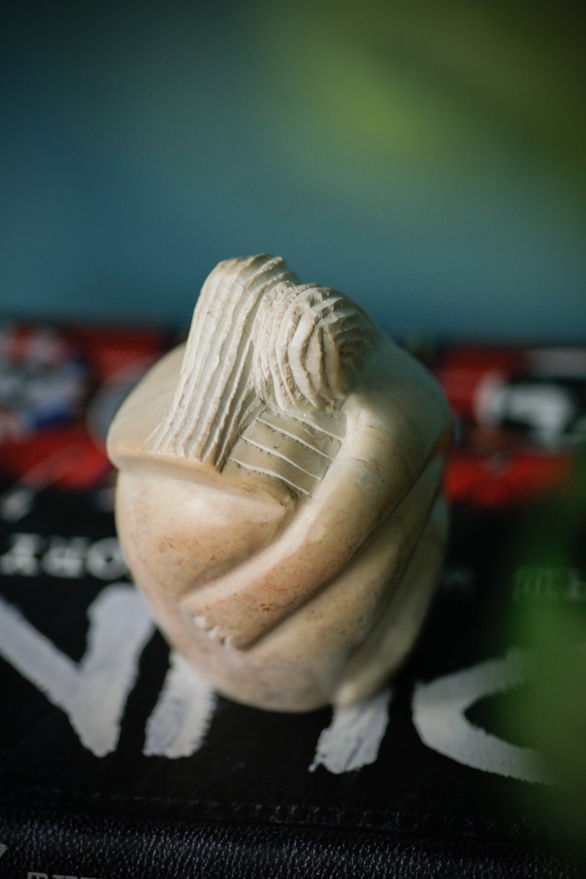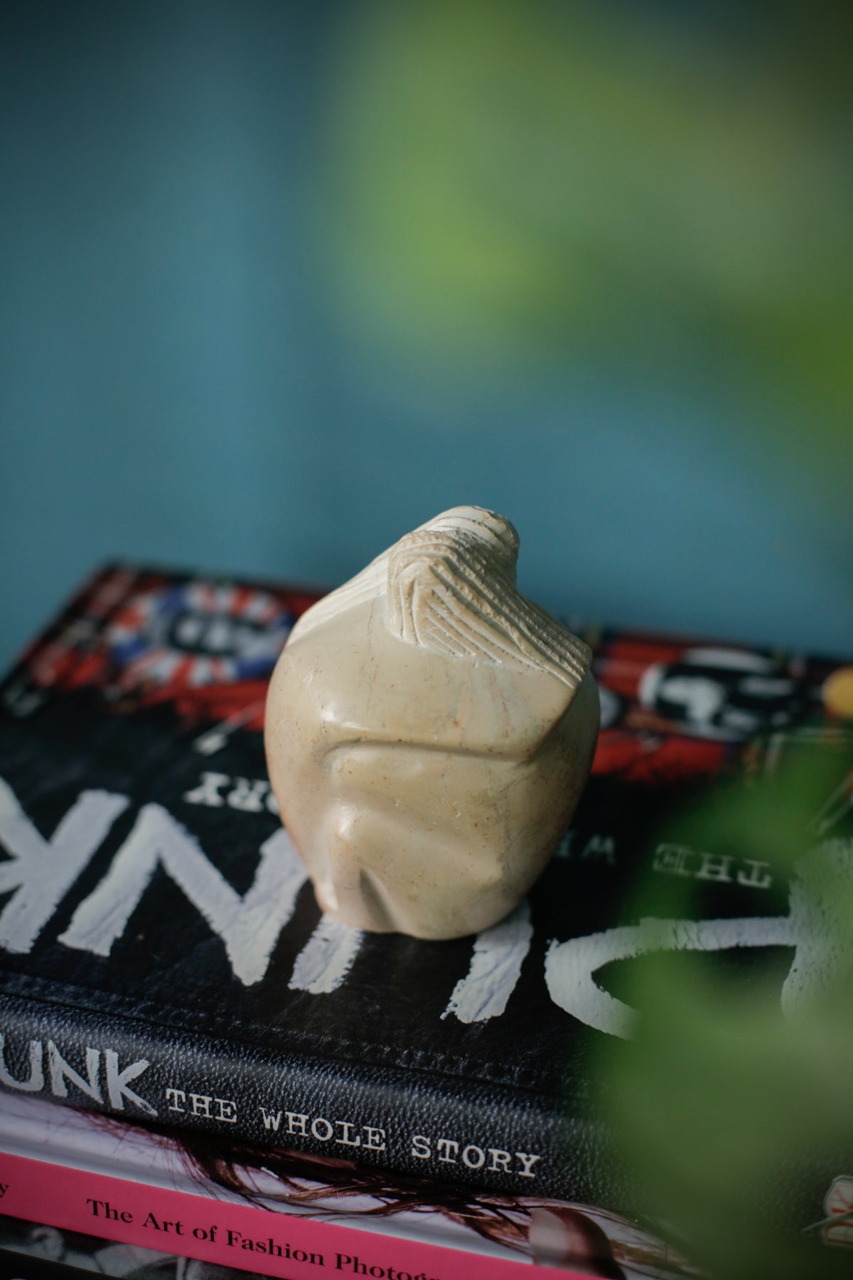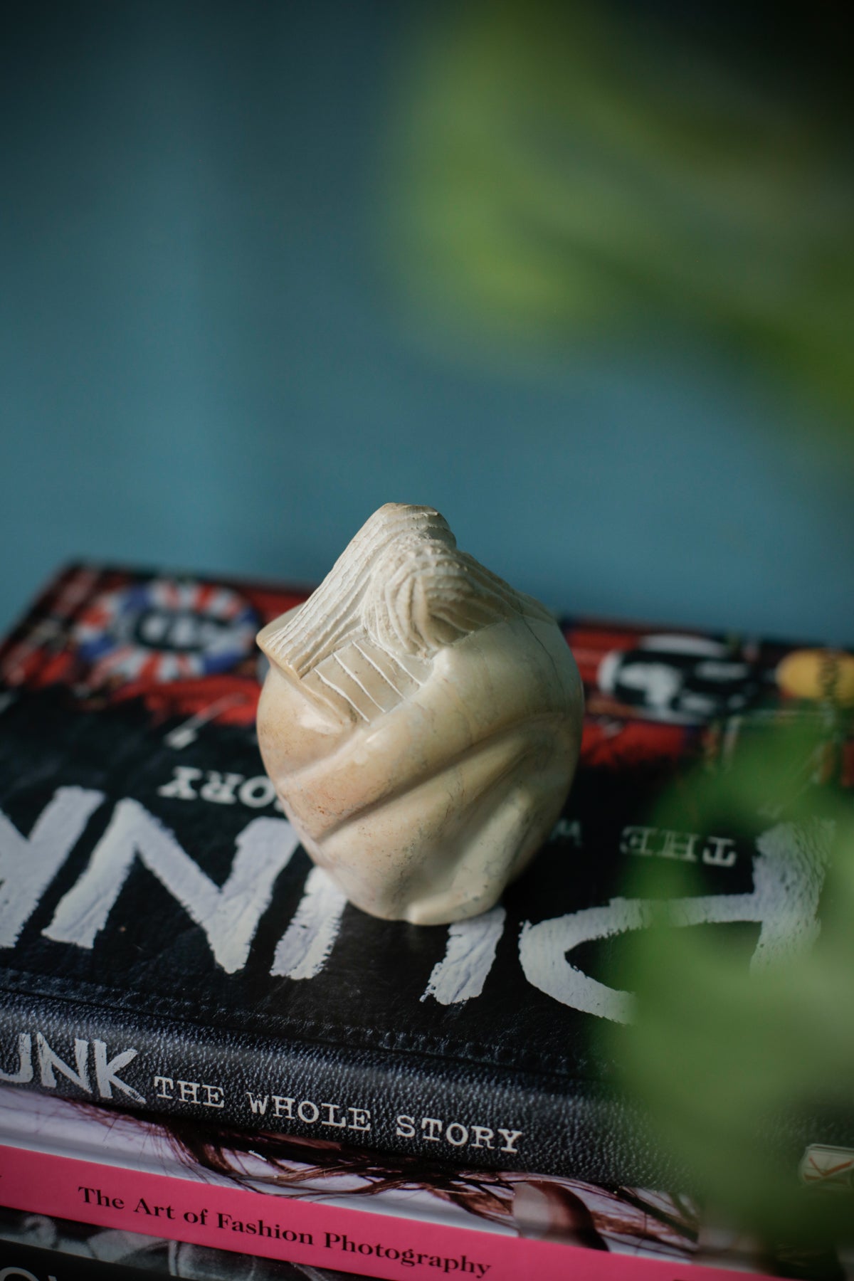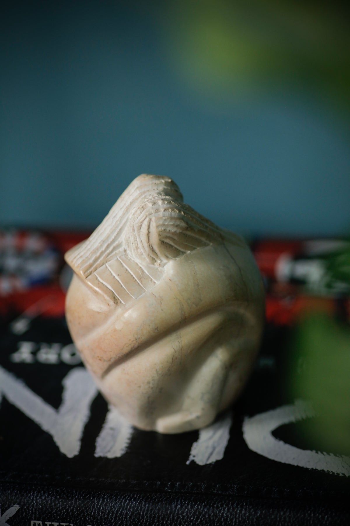 Soapstone is a metamorphic rock that consists of the mineral talc. Also commonly referred to as steatite, it is known for being soft and easy to work with. While the stone was primarily used for domestic purposes such as basketry and pottery, it is now used to create unique handmade carvings. This would be a wonderful sculpture to adorn or home or collection.