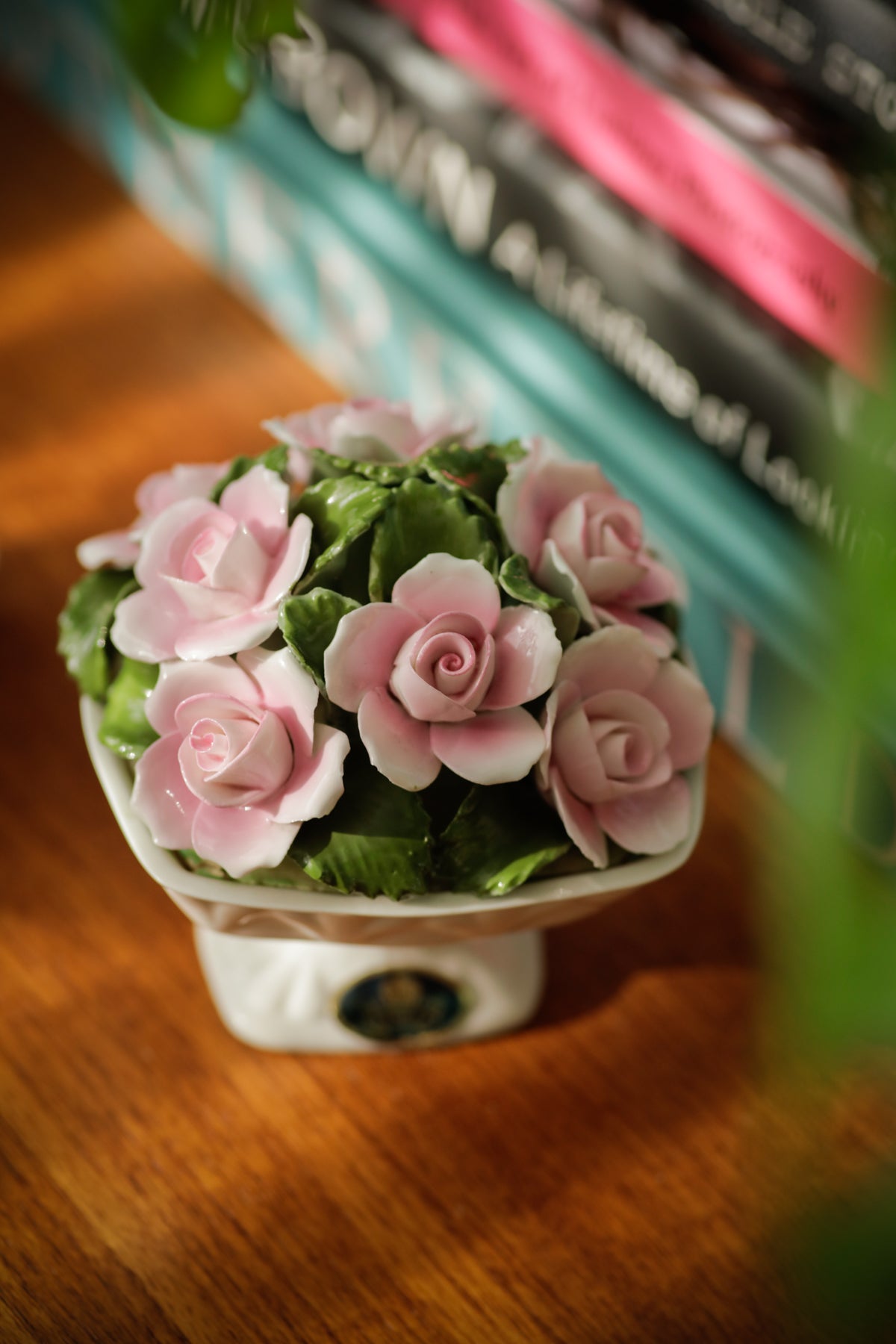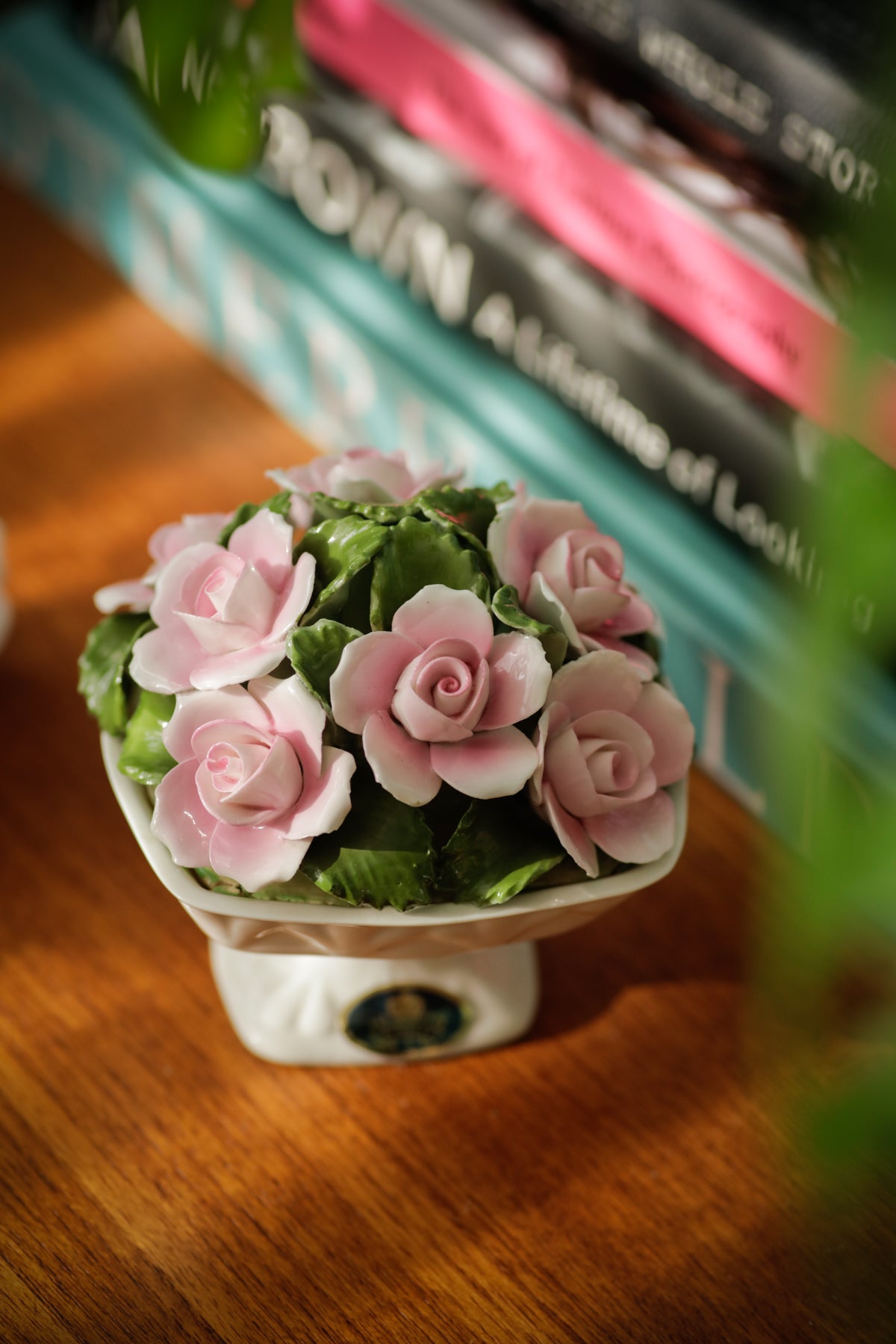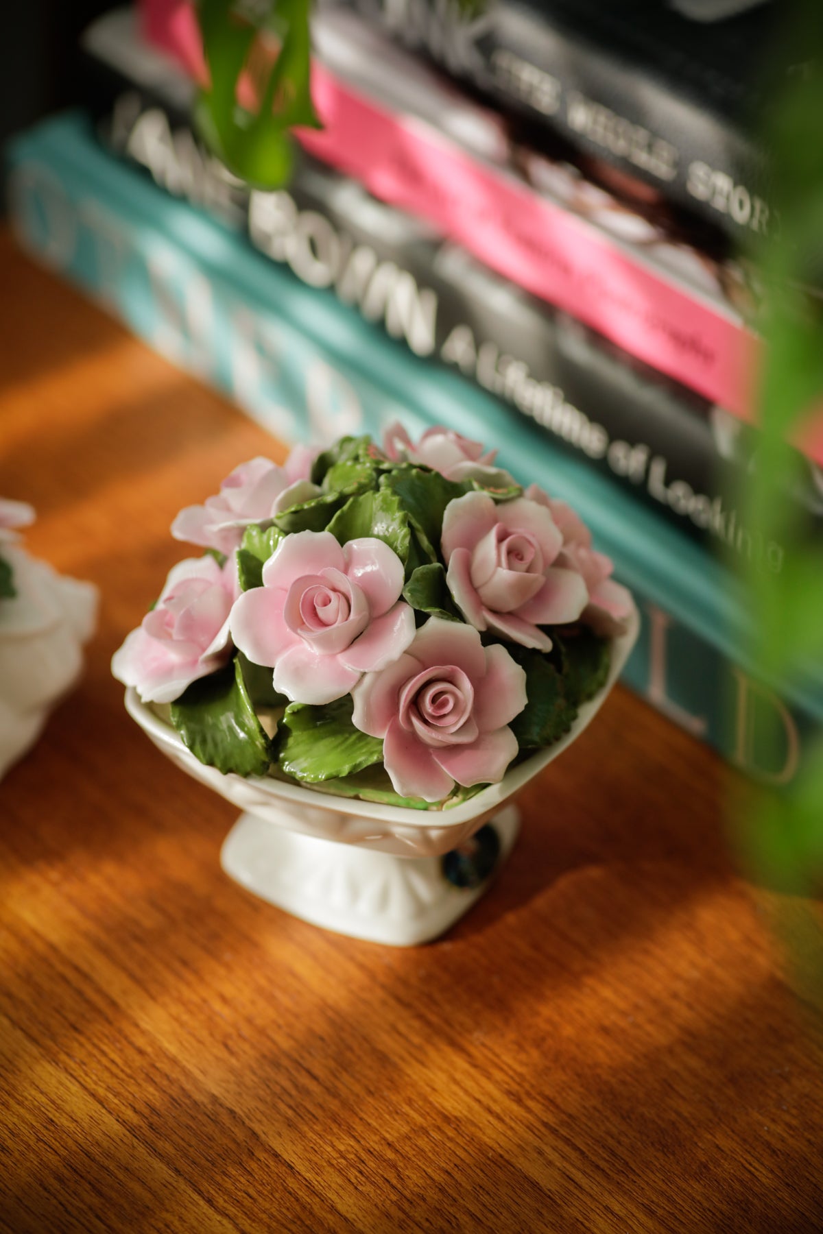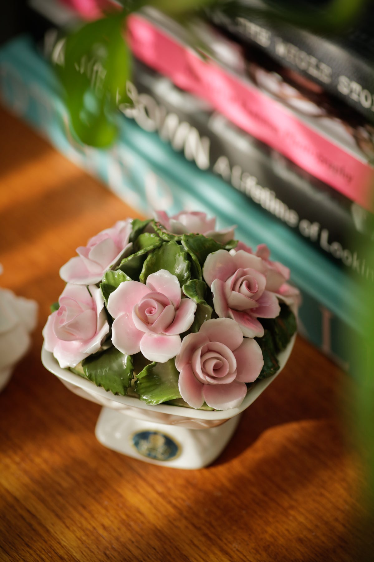 Vintage Aynsley Finebone China Pink Roses in a Basket Figurine Sculpture