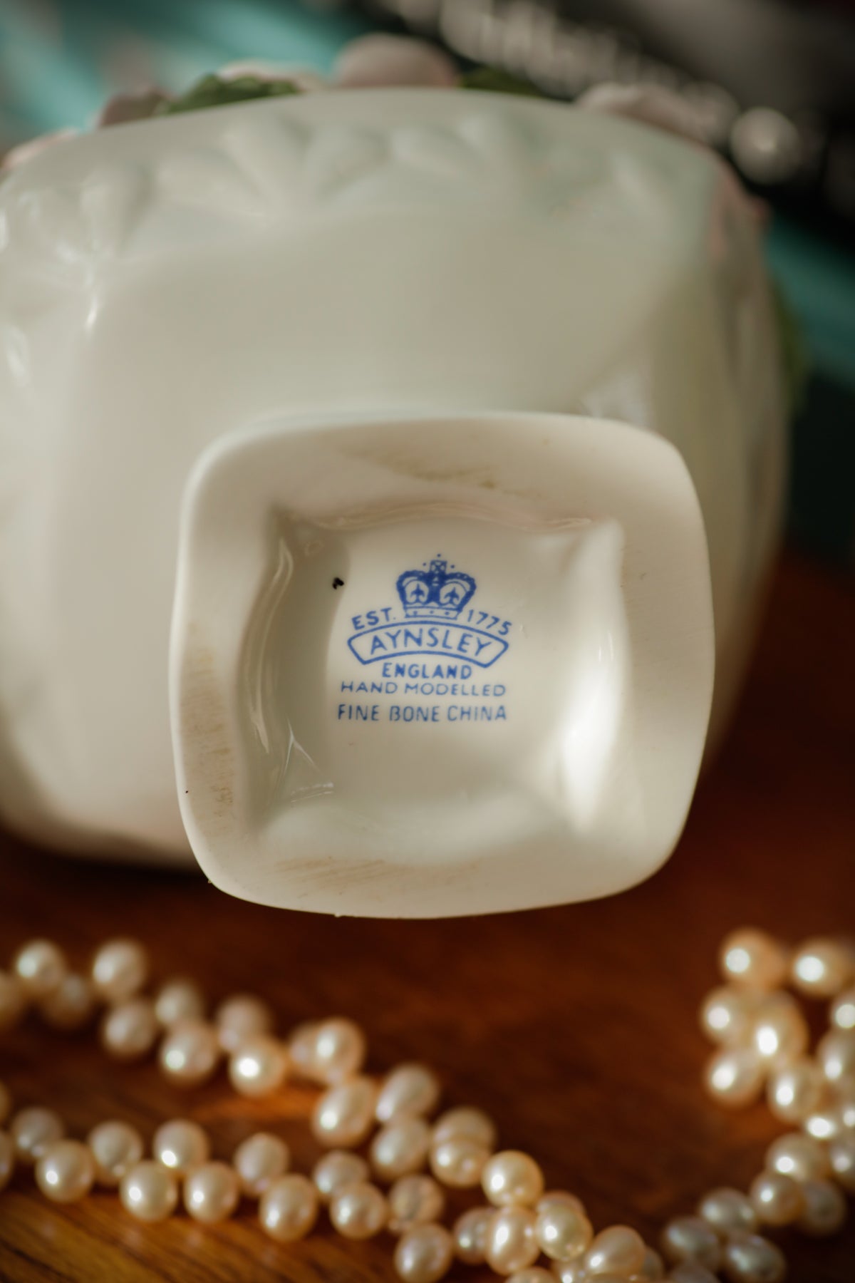Gorgeous Aynsley Finebone China handmade little sculpture of porcelain roses in a basket.