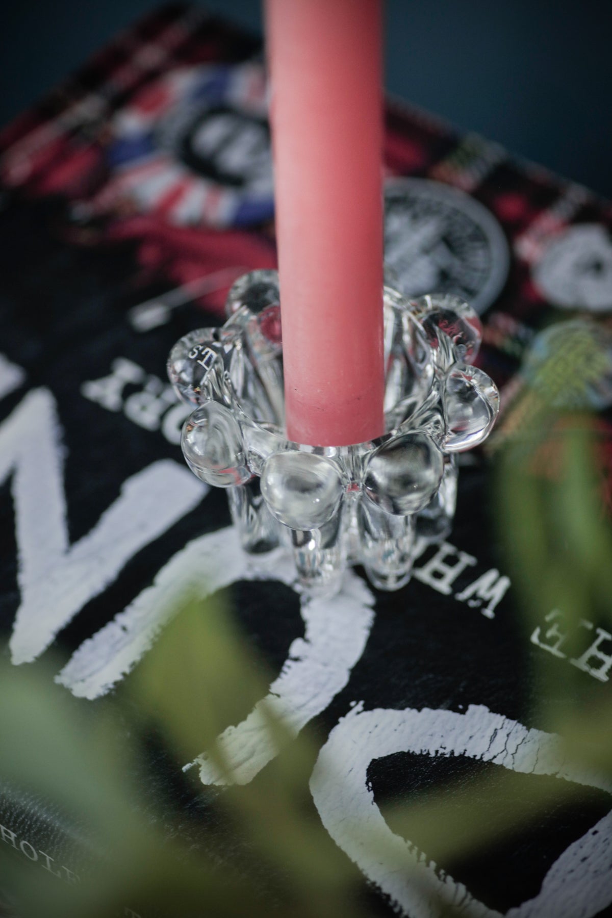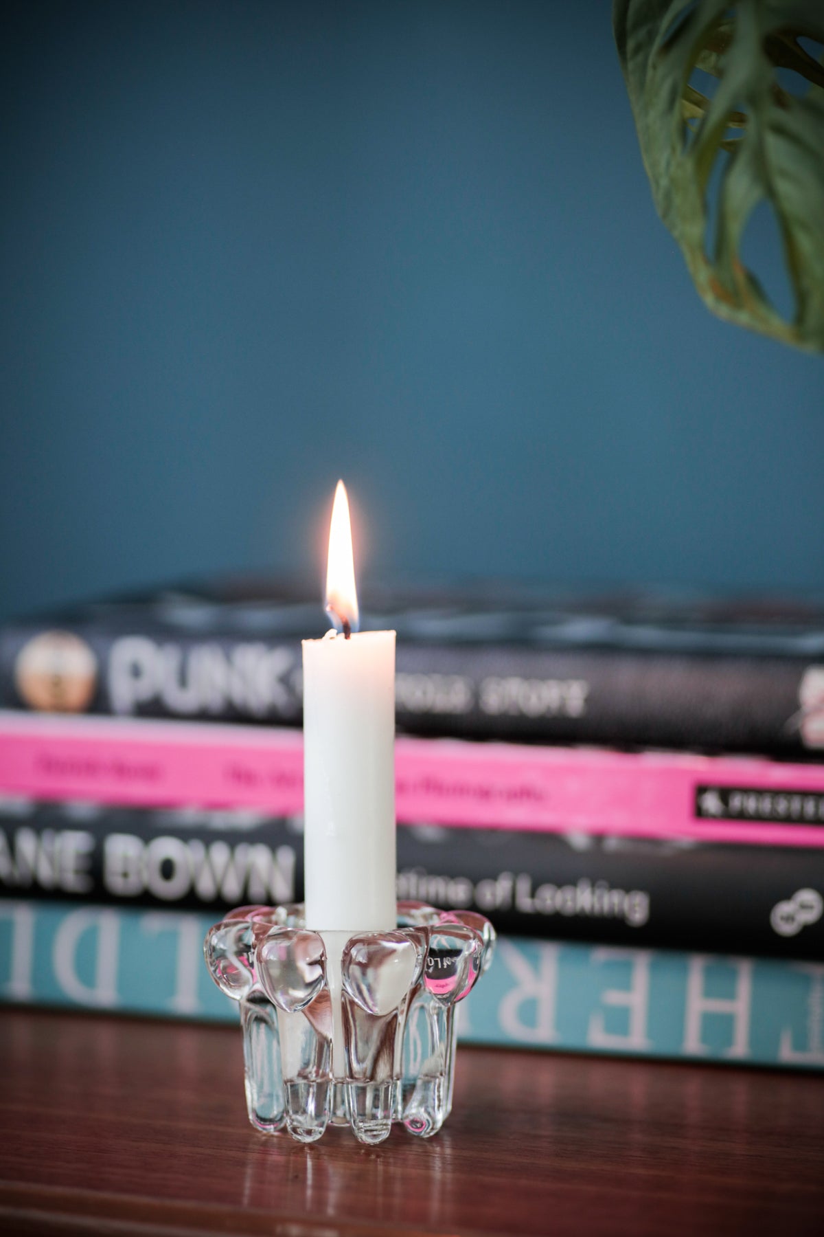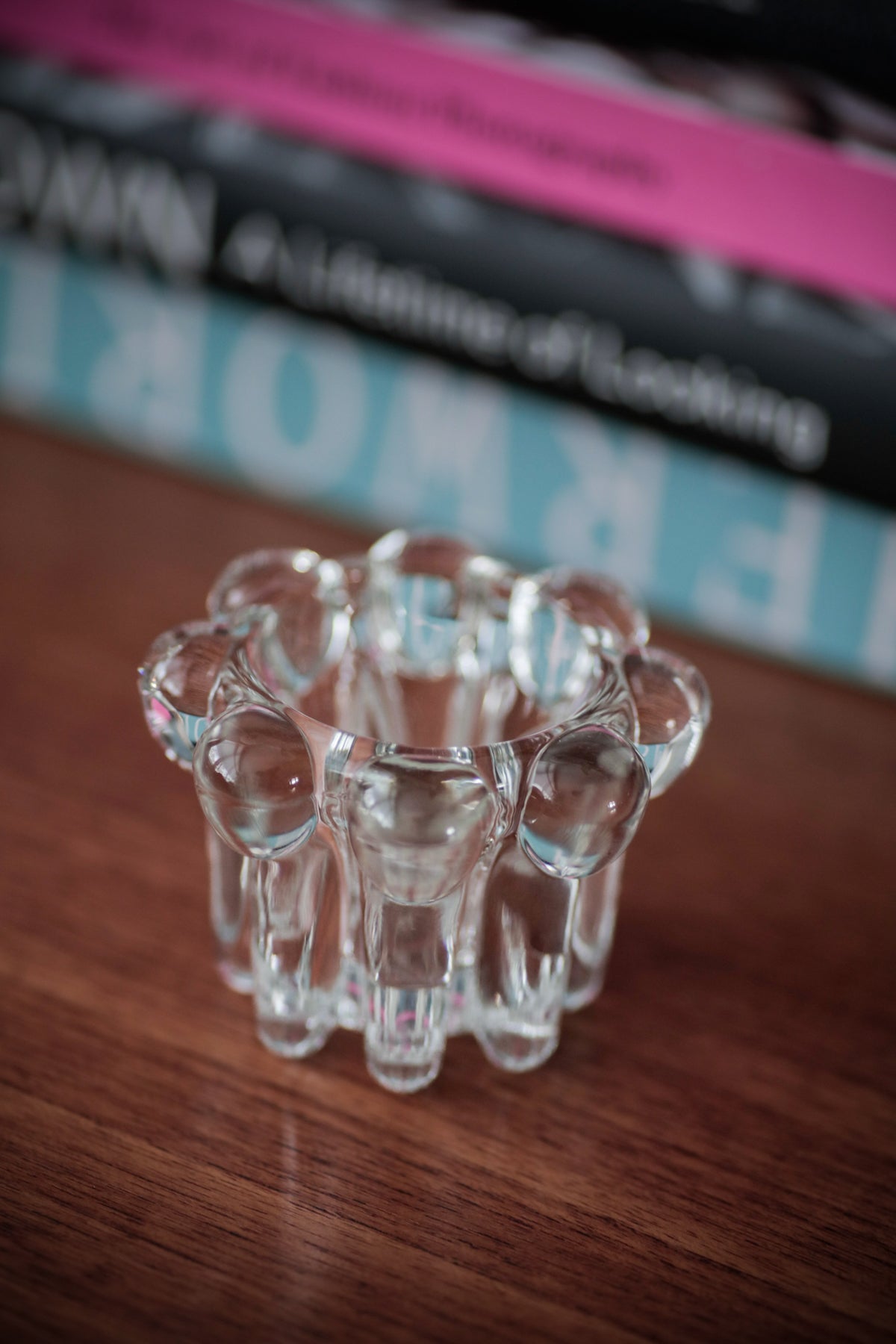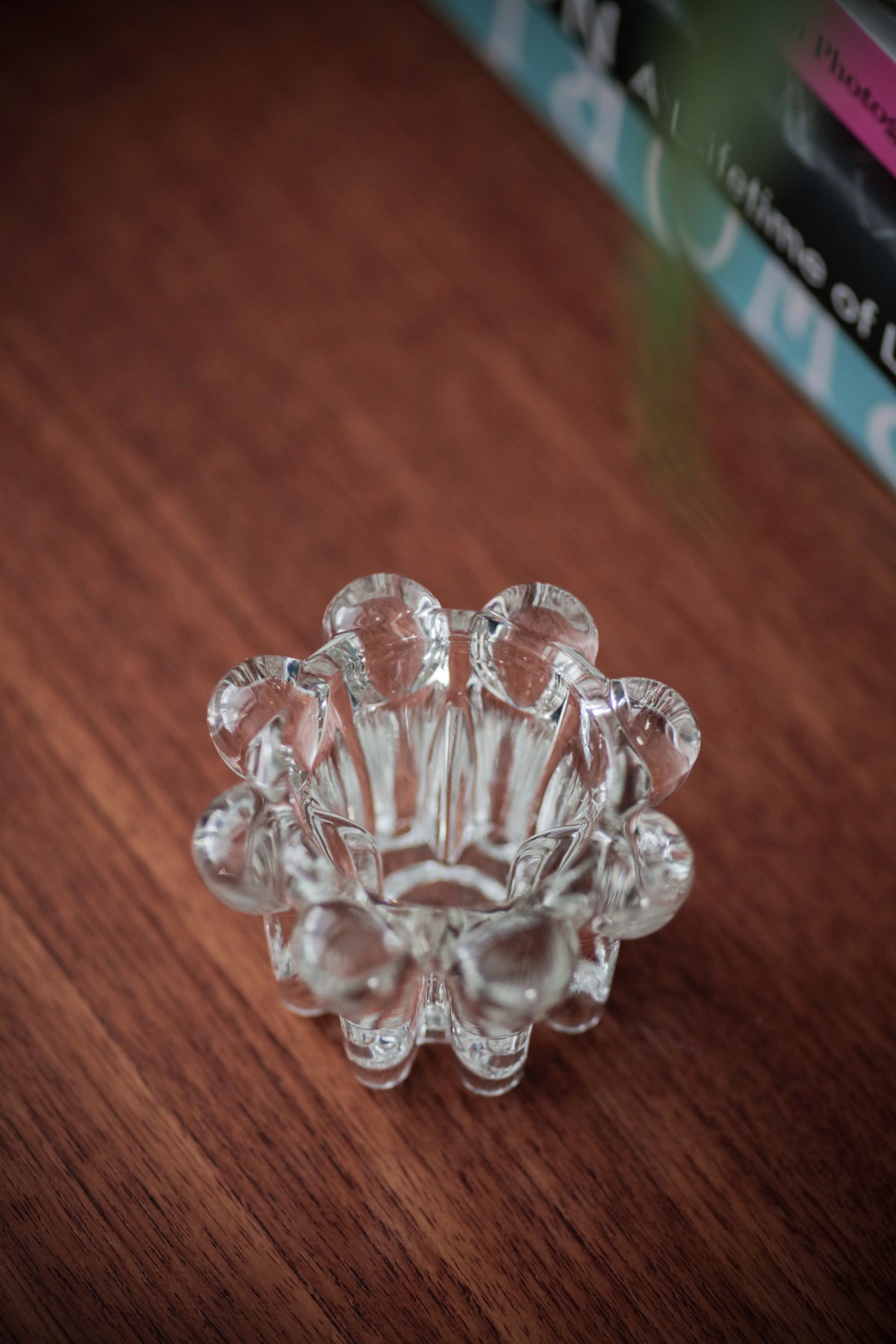 Vintage French Clear Glass Midcentury Candle Holder. Gorgeous light catching effect.