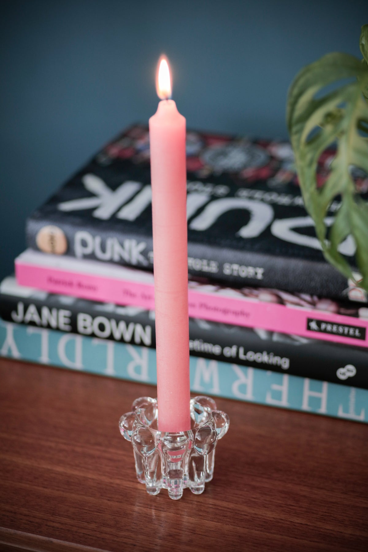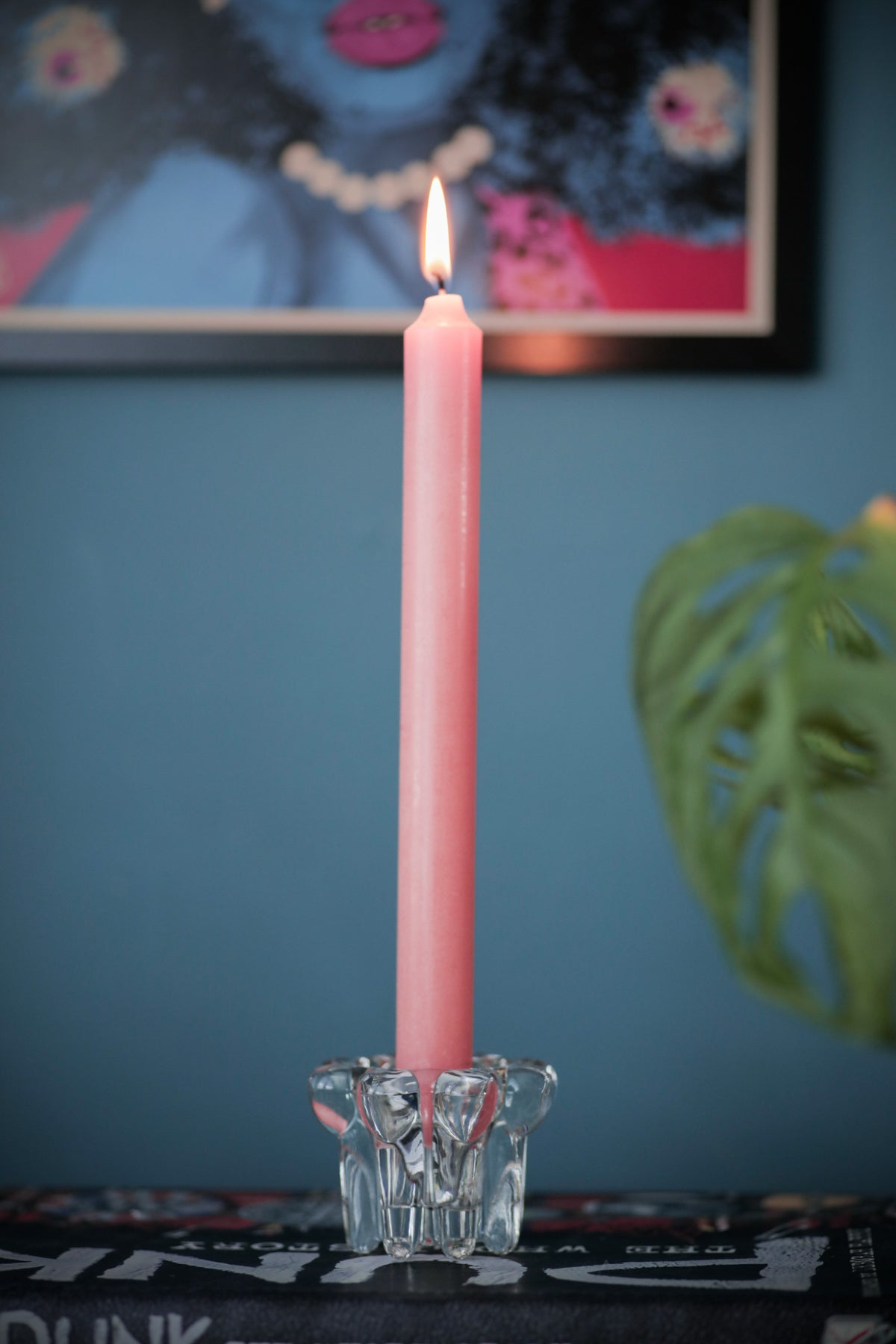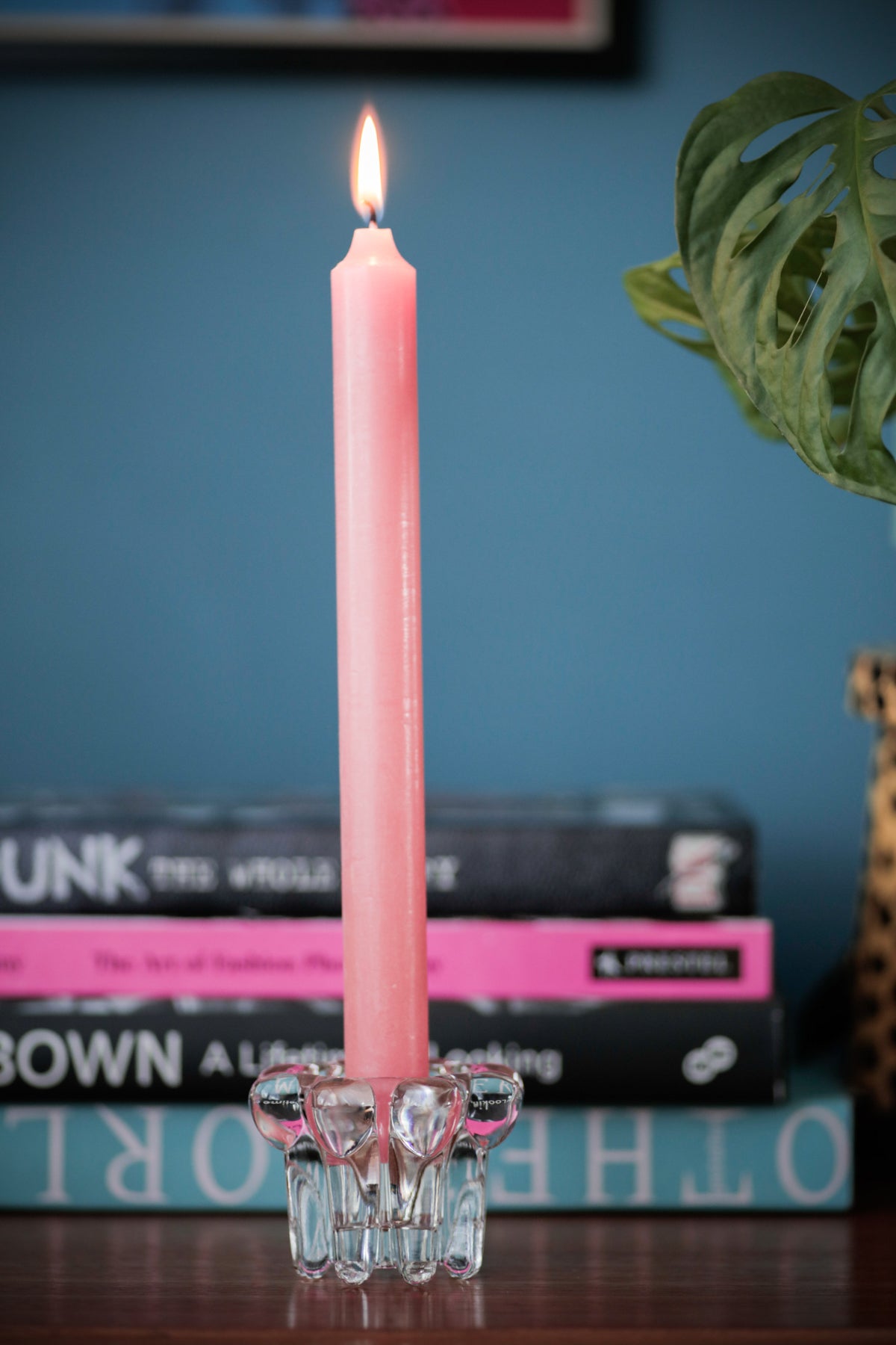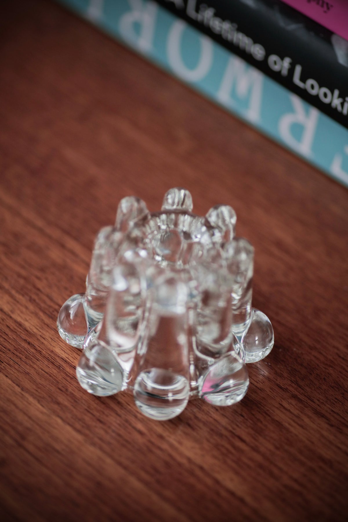 Vintage French Clear Glass Midcentury Candle Holder. Gorgeous light catching effect.
