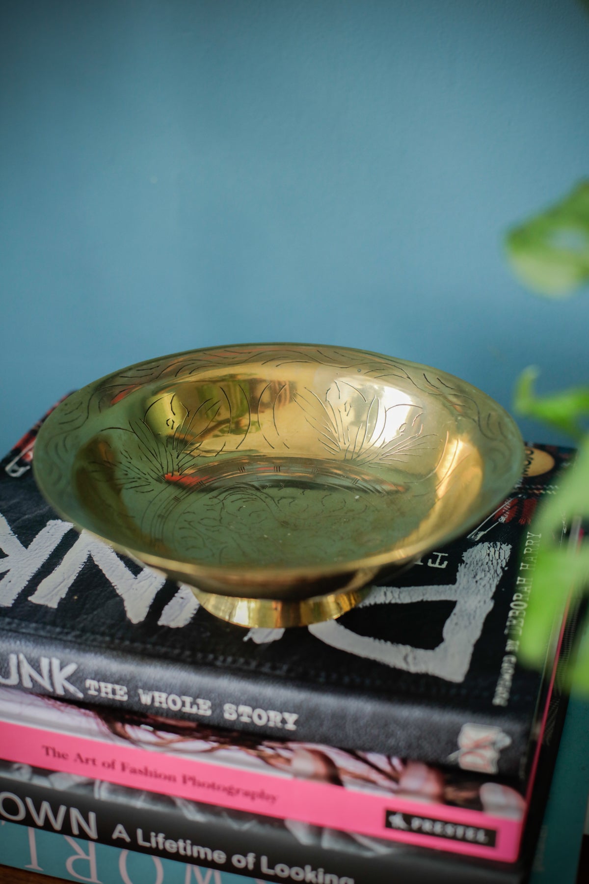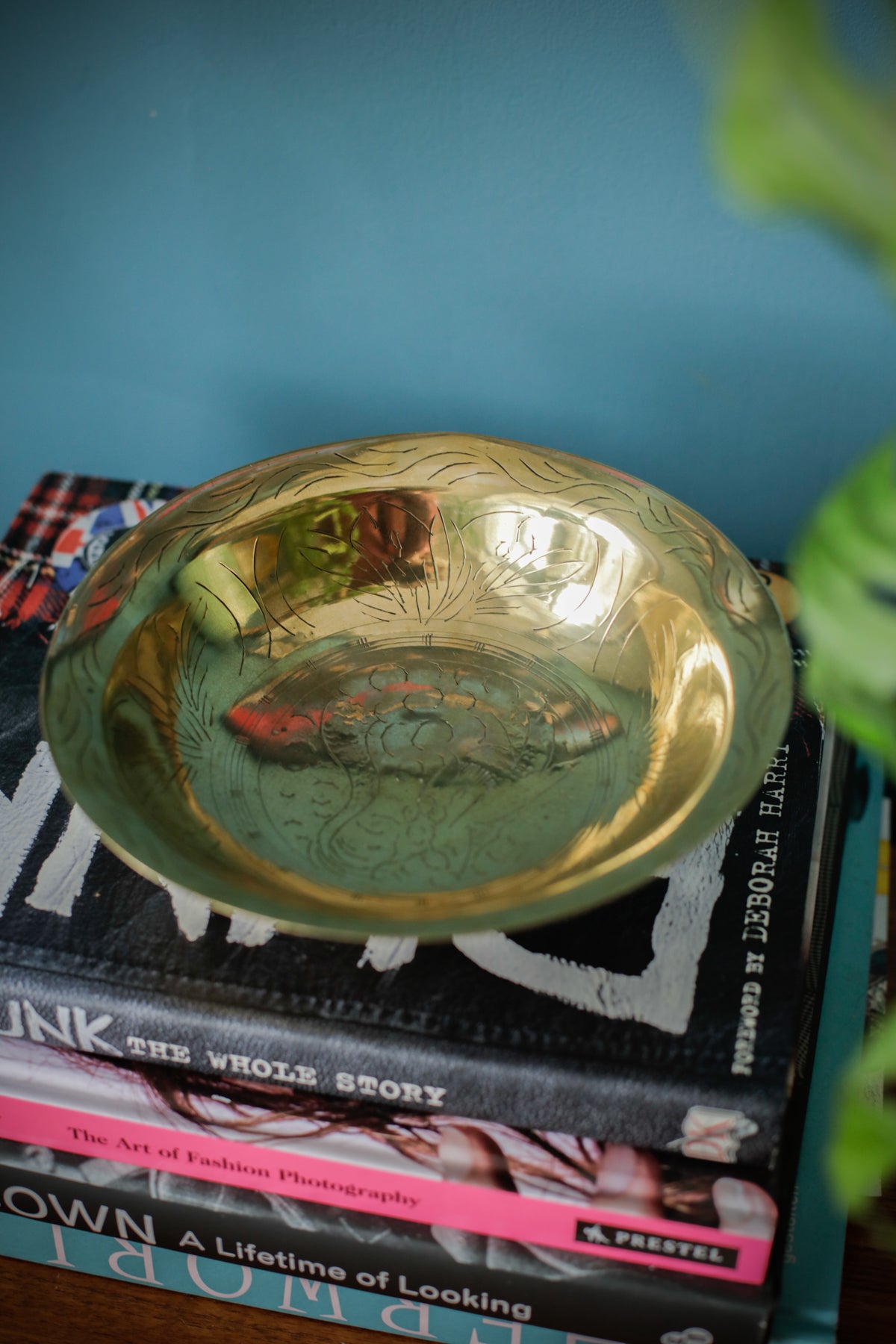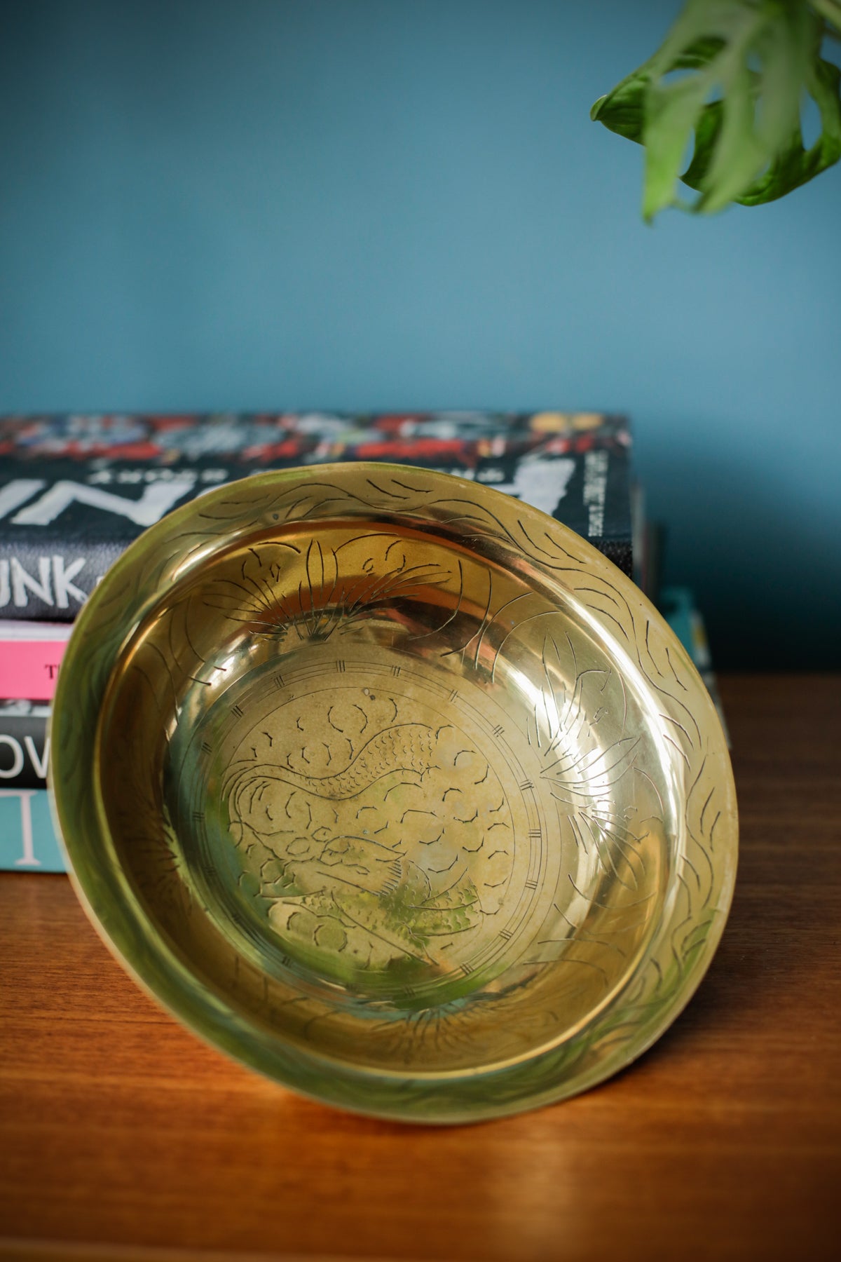 Vintage Oriental Brass Engraved Offering Bowl
