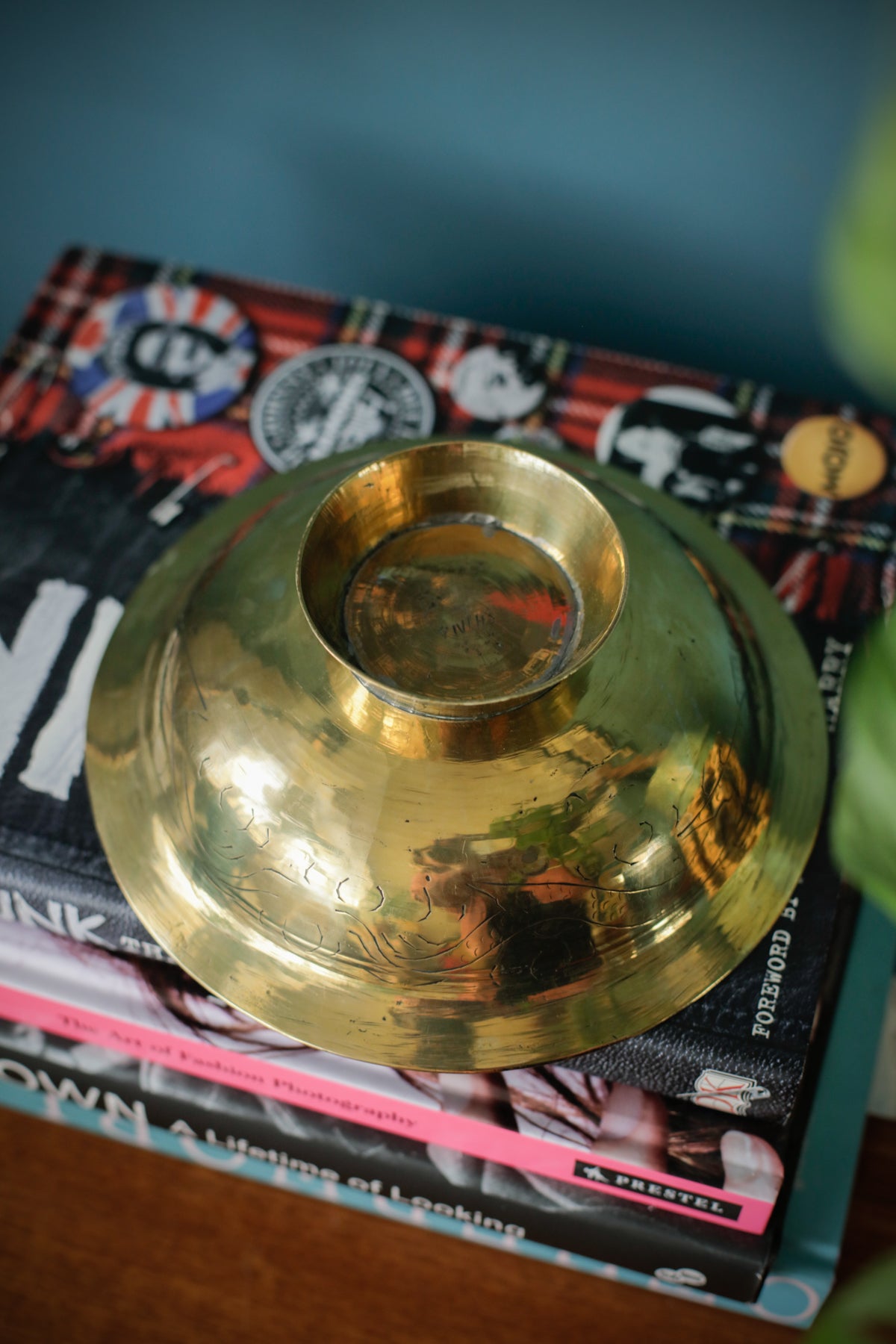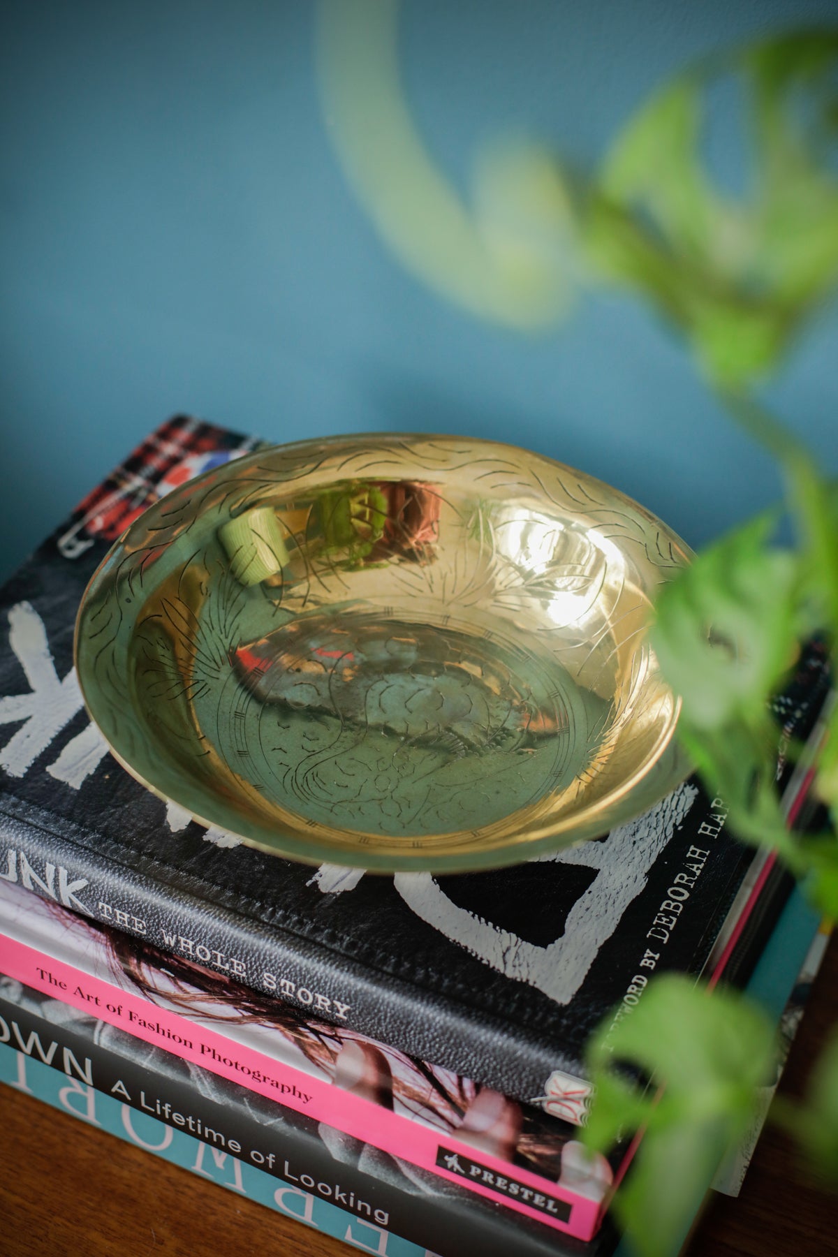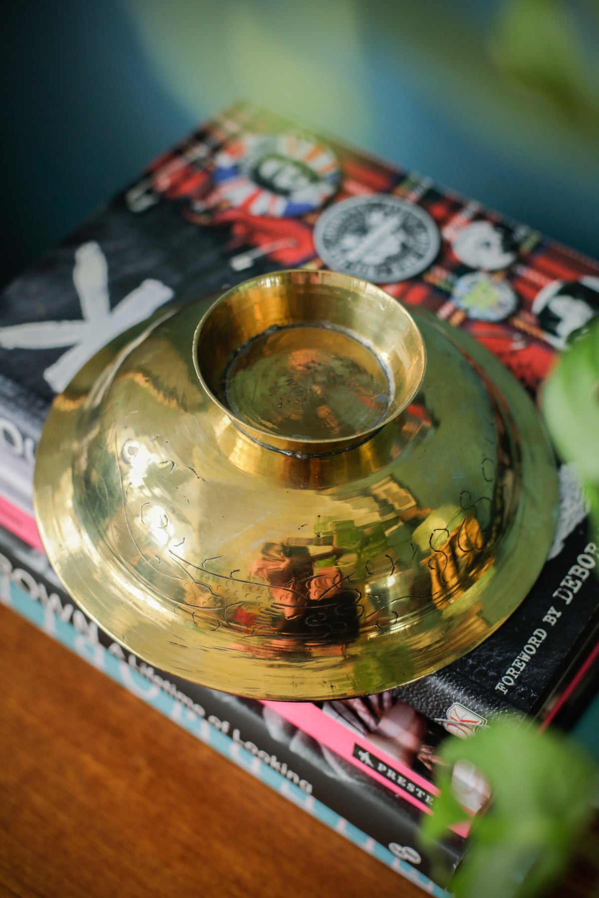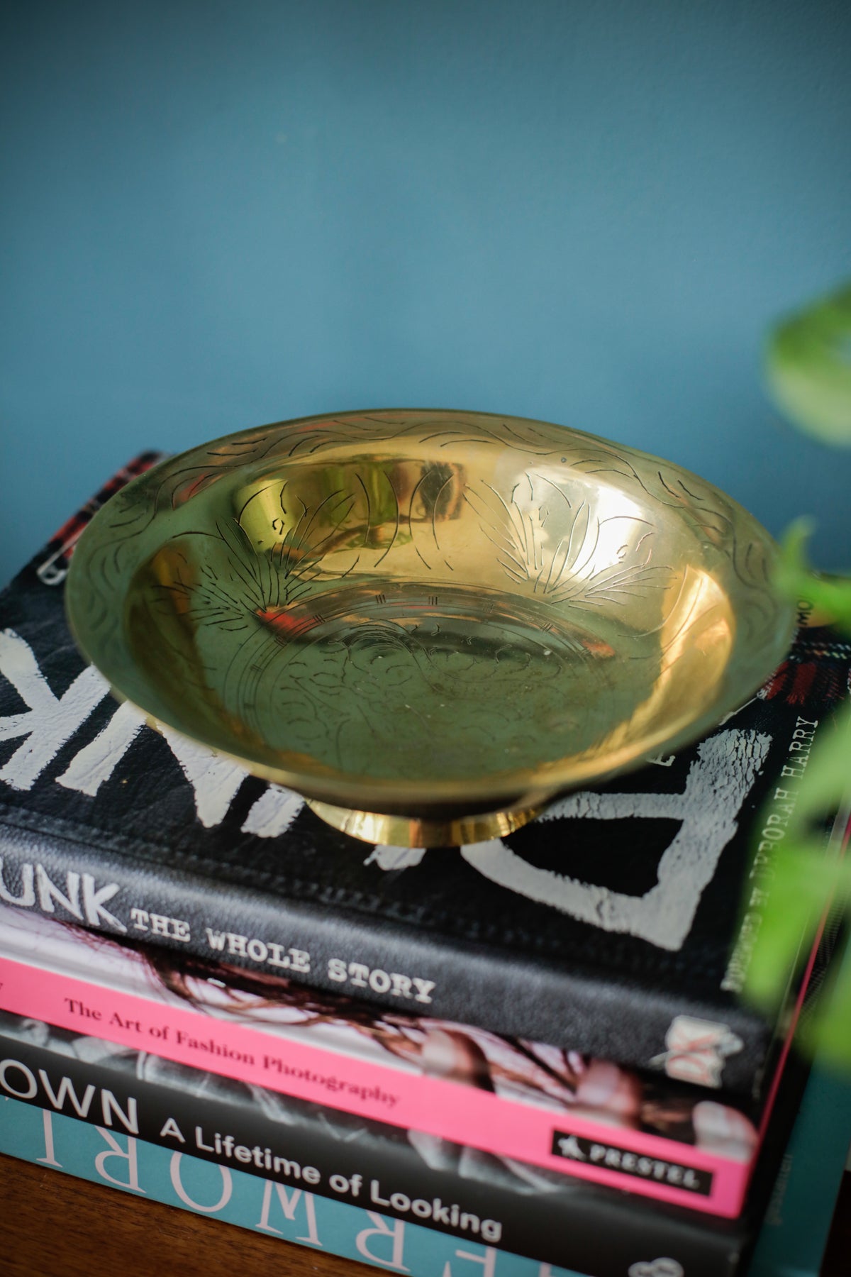 Vintage Oriental Brass Engraved Offering Bowl