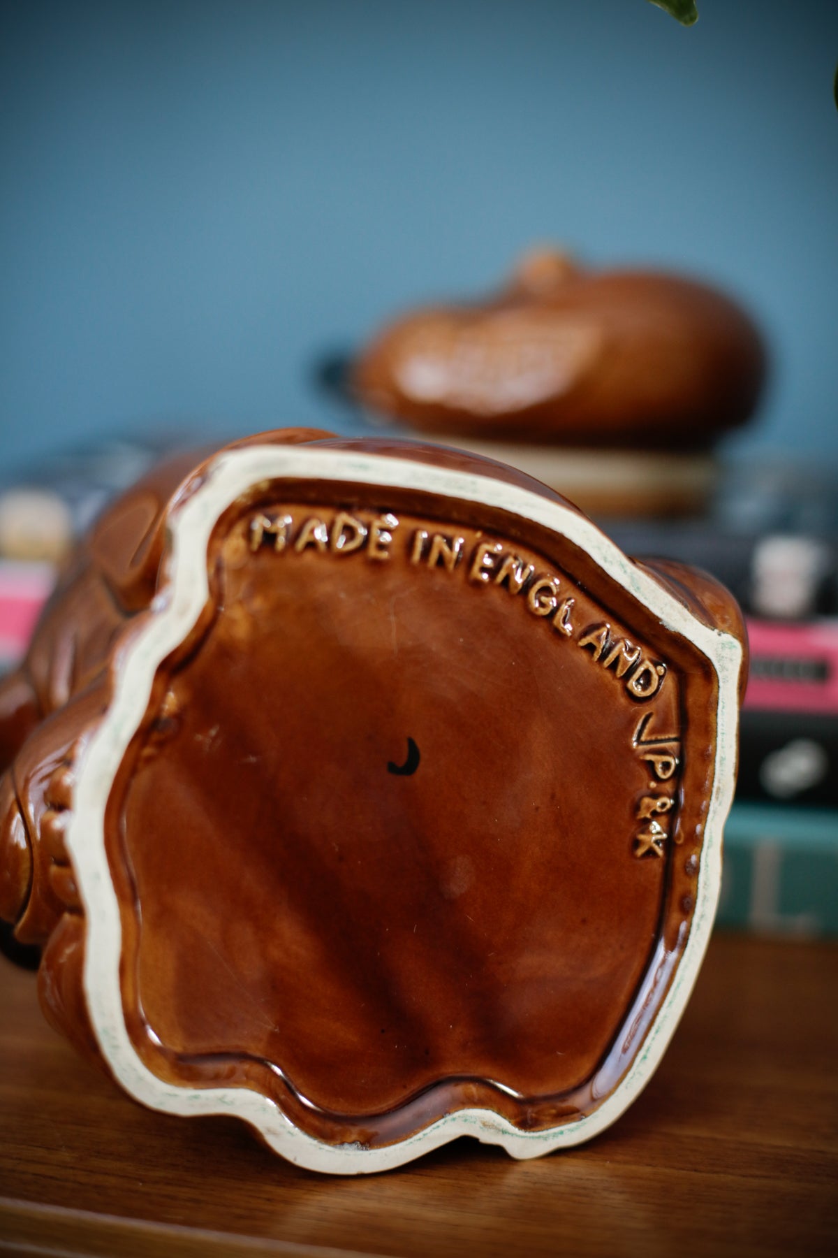 Vintage P&K Price & Kensington Pottery Ceramic Droopy Dog Biscuits Cookies Container Jar Brown Glaze Made in England 70s