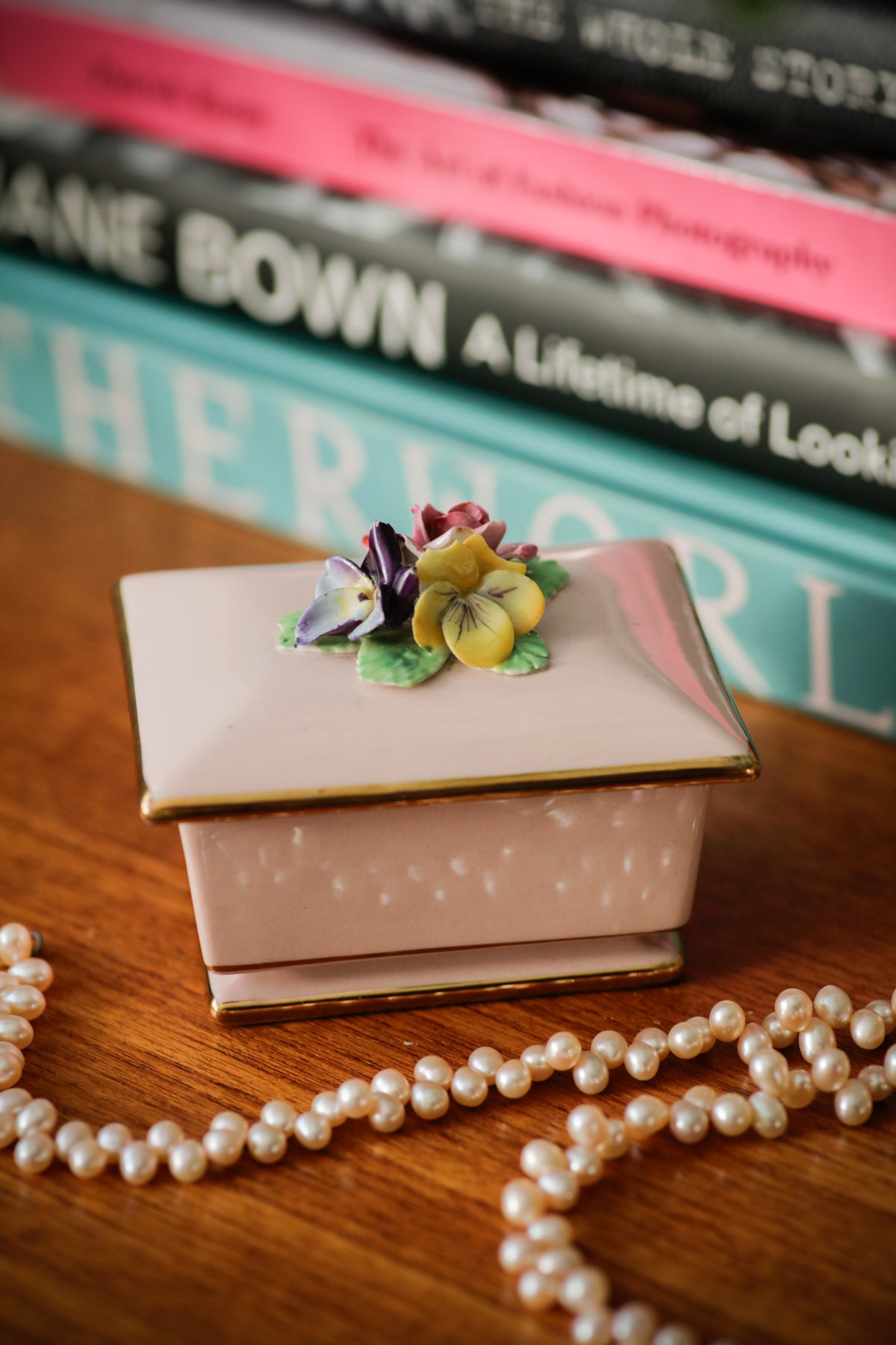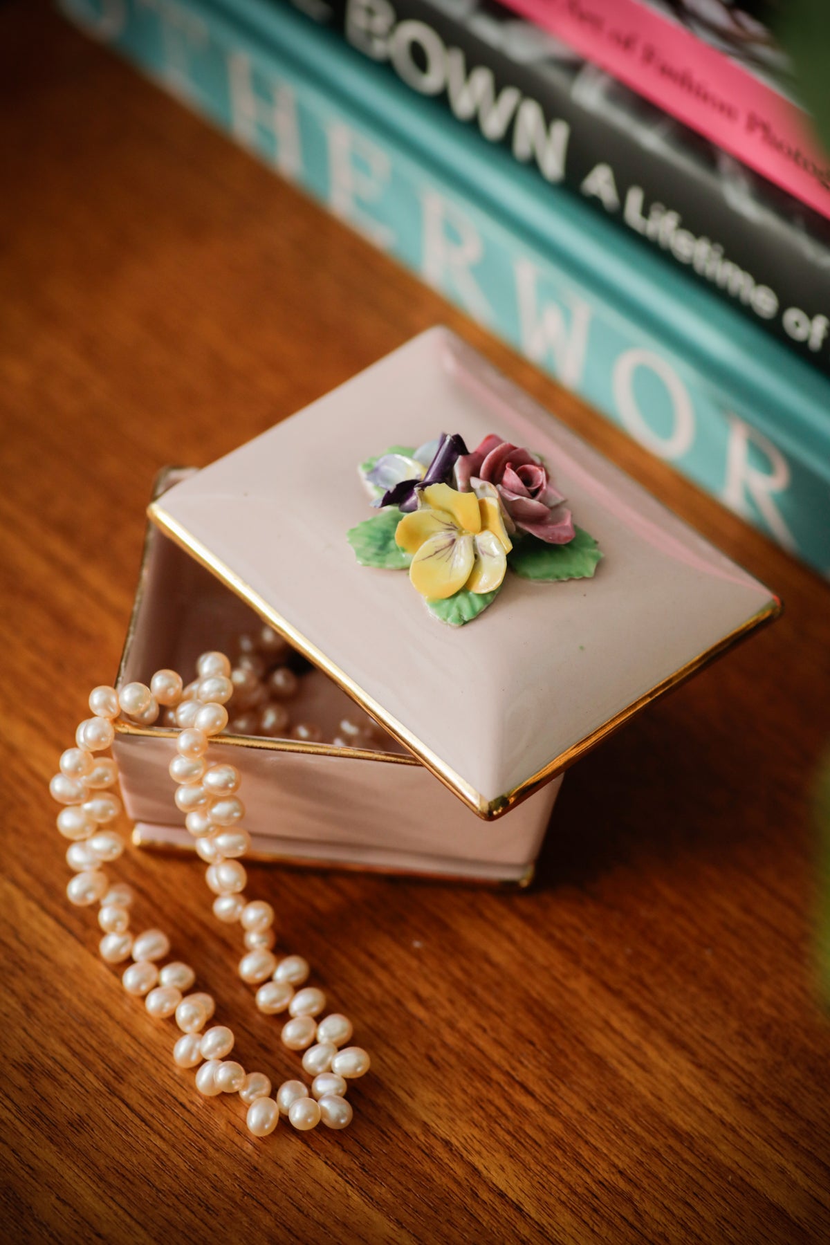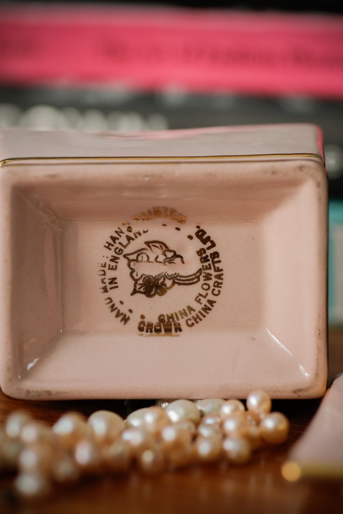 Vintage Porcelain Pink Floral Jewellery Box '80s