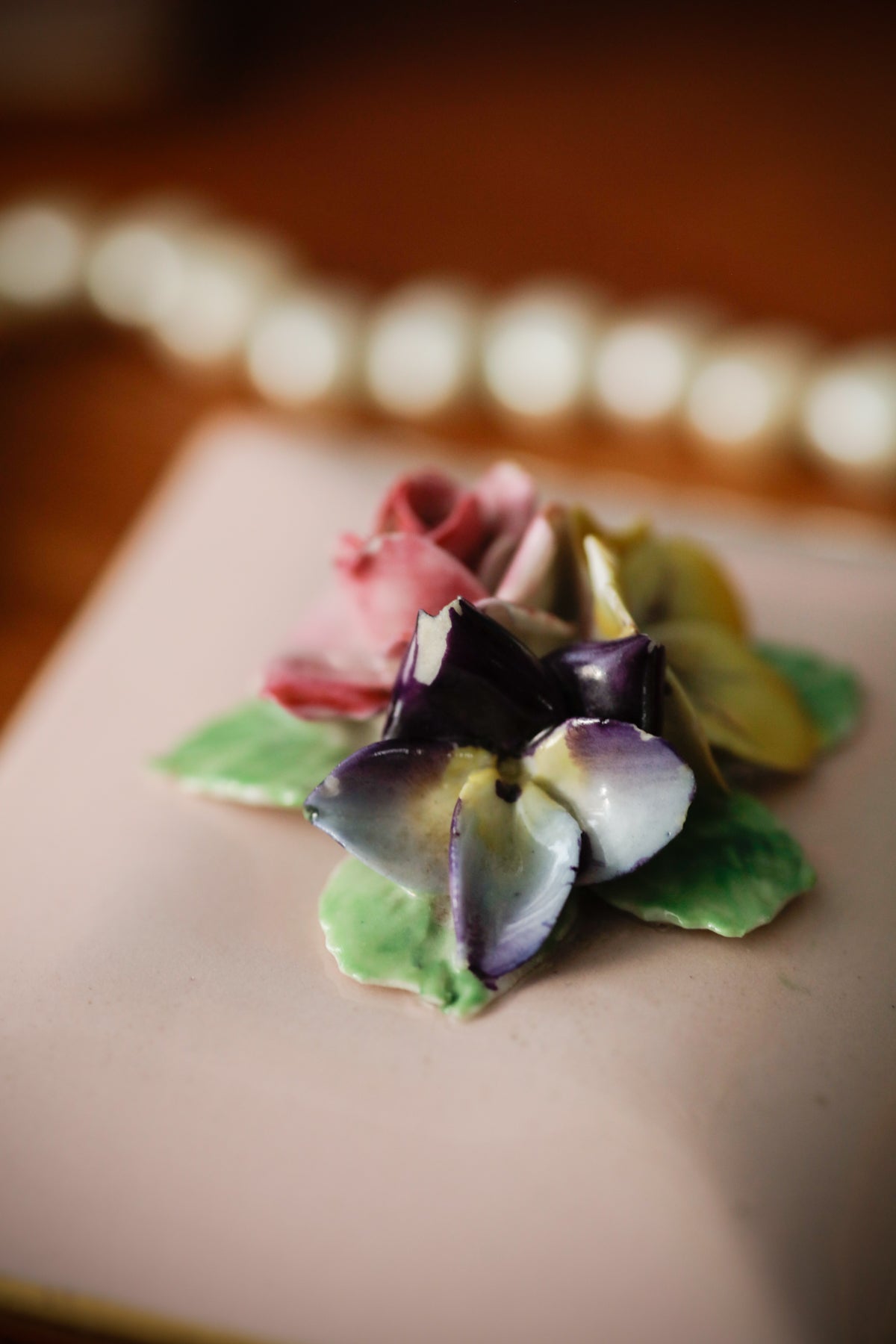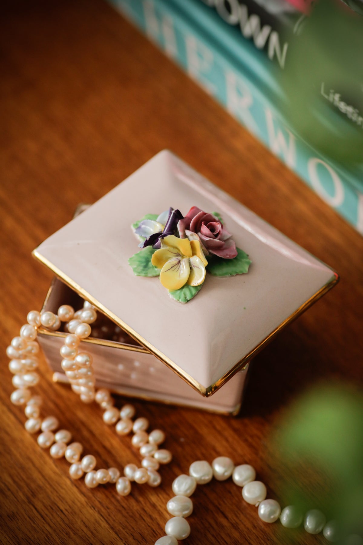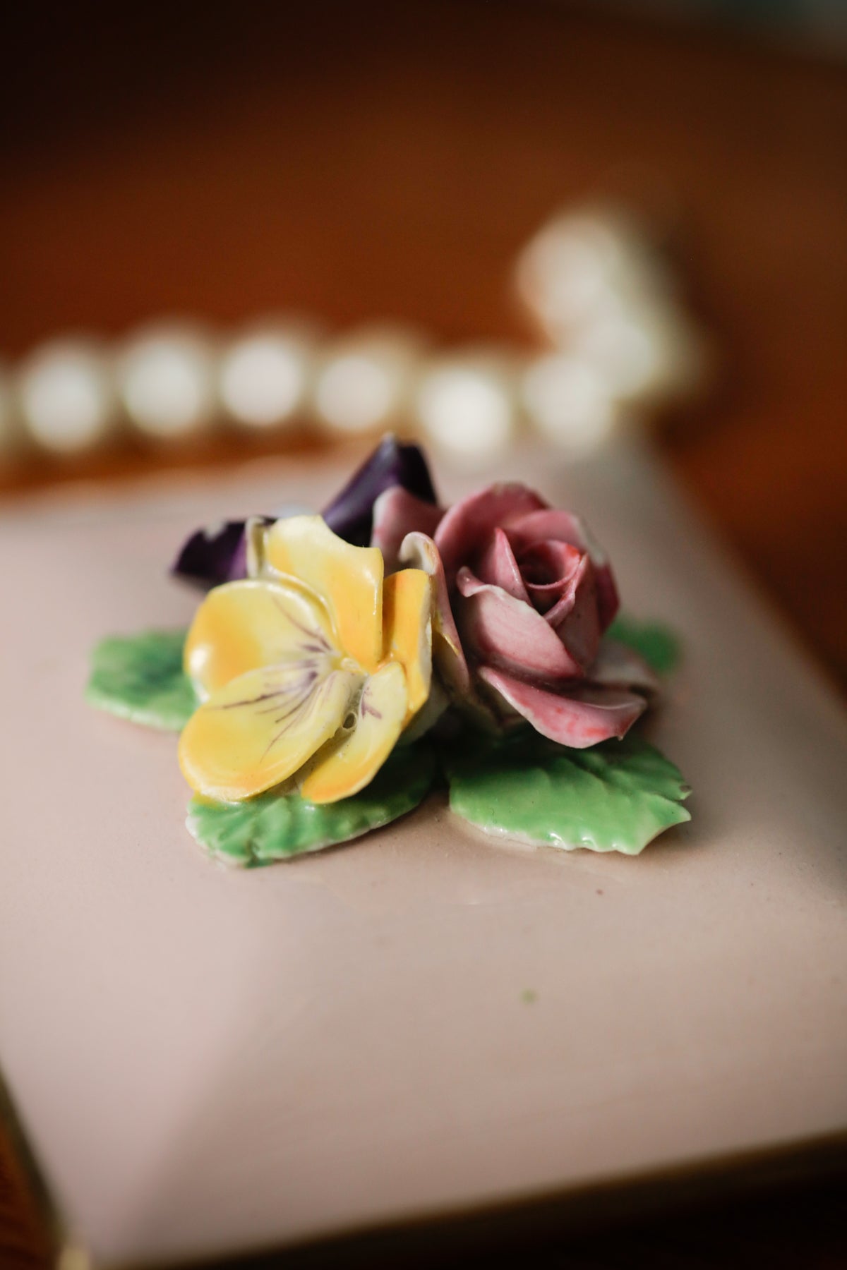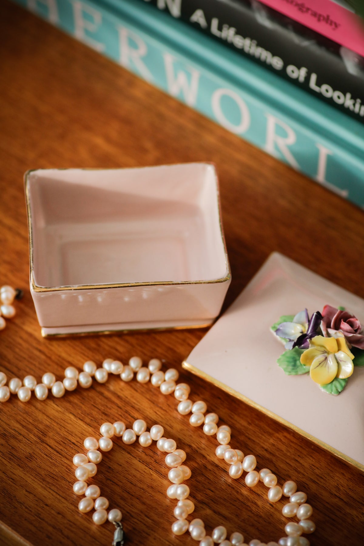 Vintage Porcelain Pink Floral Jewellery Box '80s